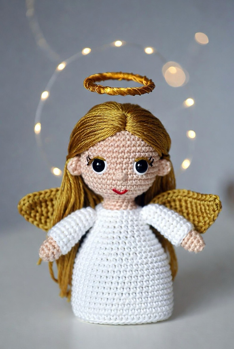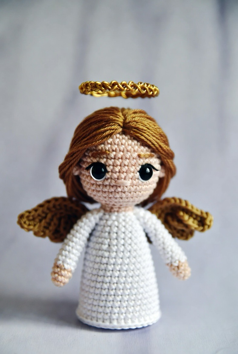 The final inspiration focuses on the classic iconography of the halo. In this version, the halo is not just an afterthought but the star of the show. You can use gold wire or stiffened gold embroidery floss to create a floating, radiant circle above the angel’s head. Pairing this with a pure white body and “angel skin” yarn for the face creates a museum quality piece. This is the kind of project you pass down through generations, representing the pinnacle of your crochet skills and the timeless nature of the subject.