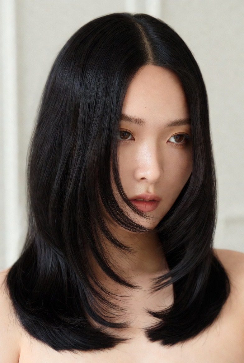 This look is all about precision. The hair is cut at a sharp, singular length, usually hitting right at the jawline, and styled to a high-gloss shine. It is a powerful choice that works best on straight hair or hair that can be easily smoothed. The lack of layers creates a solid ‘curtain’ of hair that moves as one, giving off a vibe of total control and quiet luxury.
