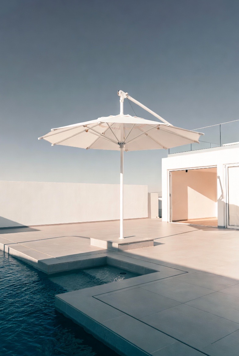 A giant, traditional umbrella can look a bit clunky. A cantilevered version keeps the base out of the way, providing a floating canopy of shade. Sticking to a monochromatic palette, like crisp white, slate grey, or deep navy, gives your deck an instant ’boutique hotel’ aesthetic.
