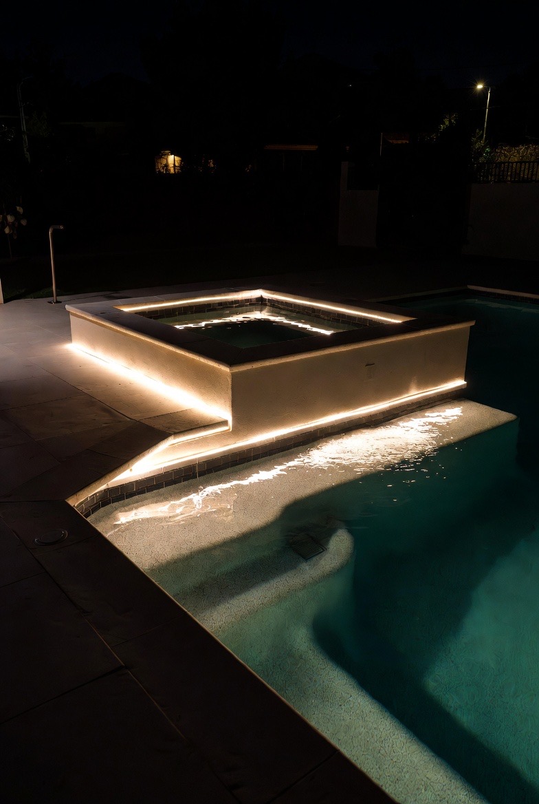 If you have built-in seating or steps, installing LED strip lighting underneath the lip provides a subtle, high-tech glow. It outlines the architecture of your deck and increases safety for night swims without the need for bright, jarring overhead lights.