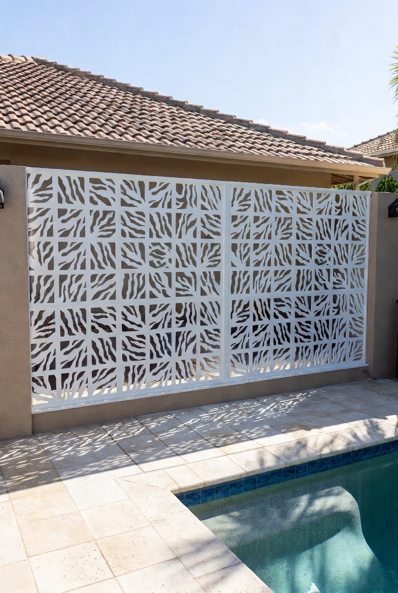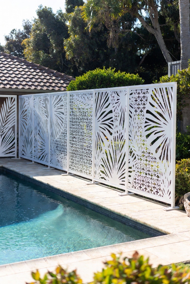 If your neighbors are a bit too close for comfort, laser-cut metal or wooden privacy screens can act as functional art. They block the line of sight while still allowing air to circulate. Choosing a pattern that mimics natural leaves or geometric tiles adds a layer of sophisticated detail to the perimeter.