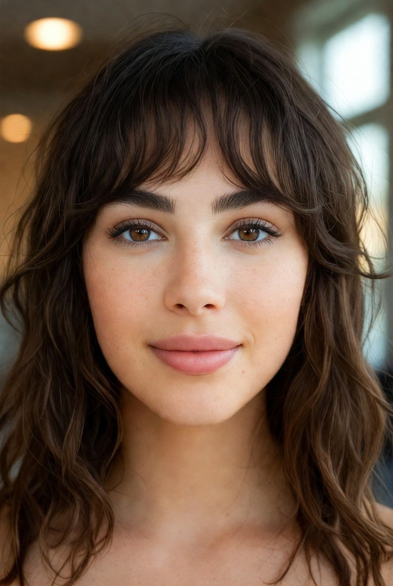 If you are nervous about a full fringe, long curtain bangs are the perfect entry point. These hit around the cheekbones or jaw and sweep out to the sides. They act as a ‘contour’ for the face, narrowing the forehead and widening the mid-face area. They are also incredibly easy to hide if you decide to pull your hair back into a sleek ponytail.