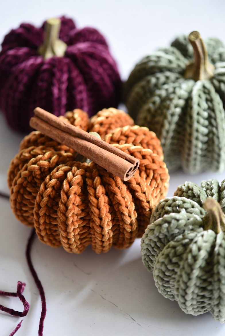 Nothing says autumn quite like a cluster of pumpkins, and using a velvet-textured yarn takes this traditional shape to a whole new level of luxury. By working in a simple rectangle of half-double crochet in the back loop only, you create deep, organic ridges that mimic the natural curves of a real gourd. These pumpkins are wonderful because they allow you to play with a sophisticated color palette, think deep plum, burnt orange, and sage green, that complements your existing furniture. Topping them with a real cinnamon stick for a stem adds a rustic touch and a subtle, spicy fragrance to your living room or entryway display.