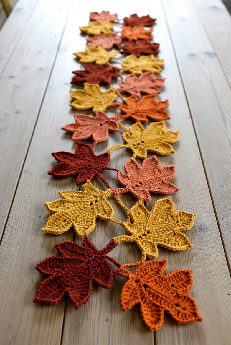 A table runner is the foundation of any festive feast, and a crochet version featuring delicate leaf motifs is a showstopper. You can create individual maple and oak leaves in various shades of gold, rust, and crimson, then join them together to form a lacy, organic path down the center of your dining table. This project is particularly satisfying because it allows you to use up small scraps of yarn from your stash. Because the design is modular, you can make it as long or as short as you need to fit your specific table, ensuring that your Thanksgiving spread feels perfectly tailored and intentionally styled.