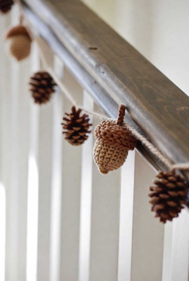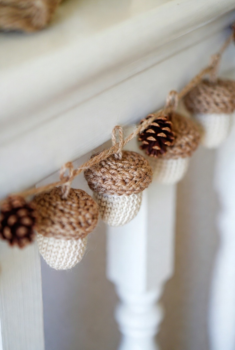 Garlands are the ultimate versatile decor, capable of draping over a mantel, wrapping around a banister, or framing a window. Crocheting small acorns with textured caps and smooth bases provides a lovely contrast that catches the light beautifully. When paired with small, brown pinecones made using the crocodile stitch, you have a forest-inspired decoration that feels fresh and timeless. Stringing them together with a simple twine or a braided yarn cord adds to the rustic, farmhouse aesthetic. It is a quiet, understated way to bring the magic of the woods indoors during the harvest season.