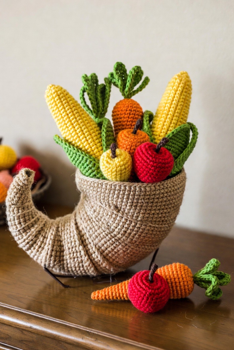The horn of plenty is the definitive symbol of Thanksgiving, and a crochet version is a stunning way to display your handmade fruits and vegetables. By using a sturdy, natural jute or a stiff cotton yarn, you can create a horn shape that holds its form on a sideboard or table. Filling it with a variety of crochet carrots, ears of corn, and small apples creates a visual representation of the year’s blessings. This project allows you to practice a wide range of stitches and shapes, resulting in a complex and beautiful arrangement that serves as a reminder of all the good things in life.