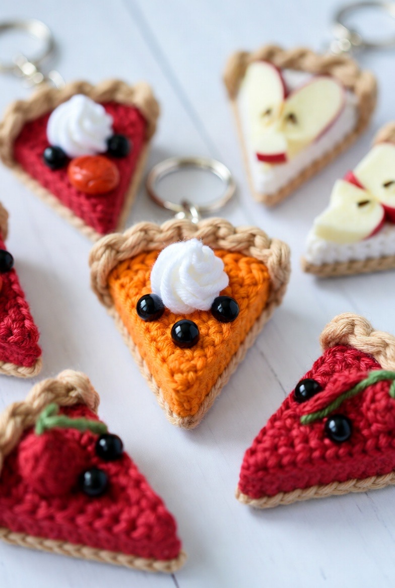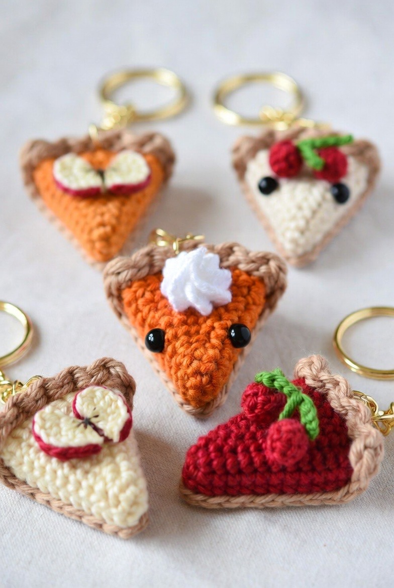 There is something incredibly whimsical about amigurumi food, and tiny slices of pumpkin, apple, and cherry pie are the perfect favors for your guests. These small projects are quick to assemble and can be turned into keychains, ornaments, or simply scattered across the table as part of the decor. Using a light tan yarn for the ‘crust’ and a textured white yarn for a dollop of ‘whipped cream’ on top makes them look almost good enough to eat. They add a sense of humor and lightheartedness to the celebration, proving that you don’t take yourself, or your decorating, too seriously.