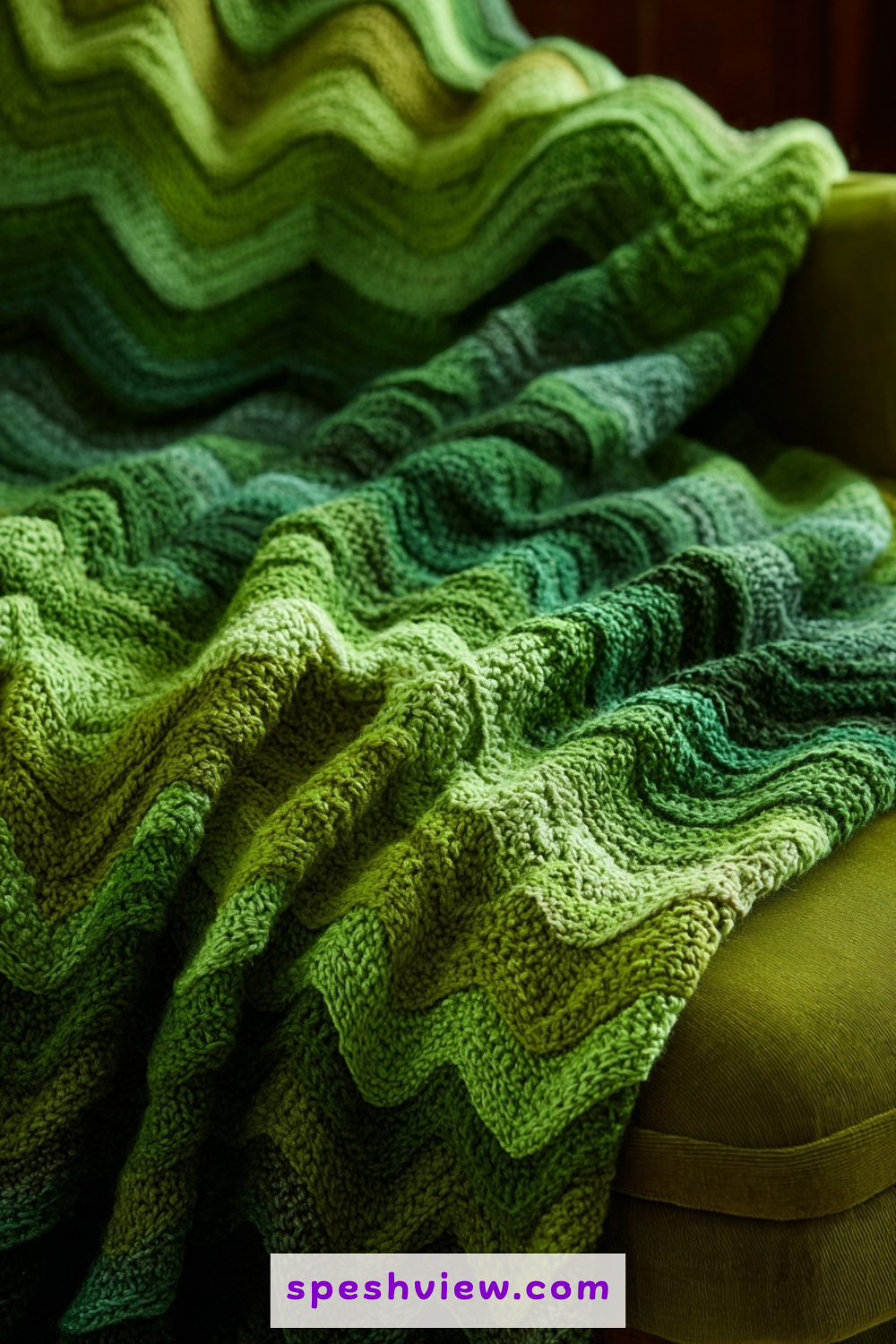 Sometimes the most powerful and sophisticated designs come from staying within a single color family rather than using high contrast. By using five or six different shades of green, ranging from deep hunter to bright lime, you can create a ripple blanket that looks like sunlight filtering through a dense forest. The movement of the ripples suggests the rustling of leaves and the layering of mossy floors in a quiet woodland. This monochromatic approach allows the intricate texture of your crochet stitches to take center stage without being overshadowed by competing hues. It is a peaceful, organic design that brings a touch of nature’s serenity into your home, providing a restful focal point for a primary bedroom or a quiet study.