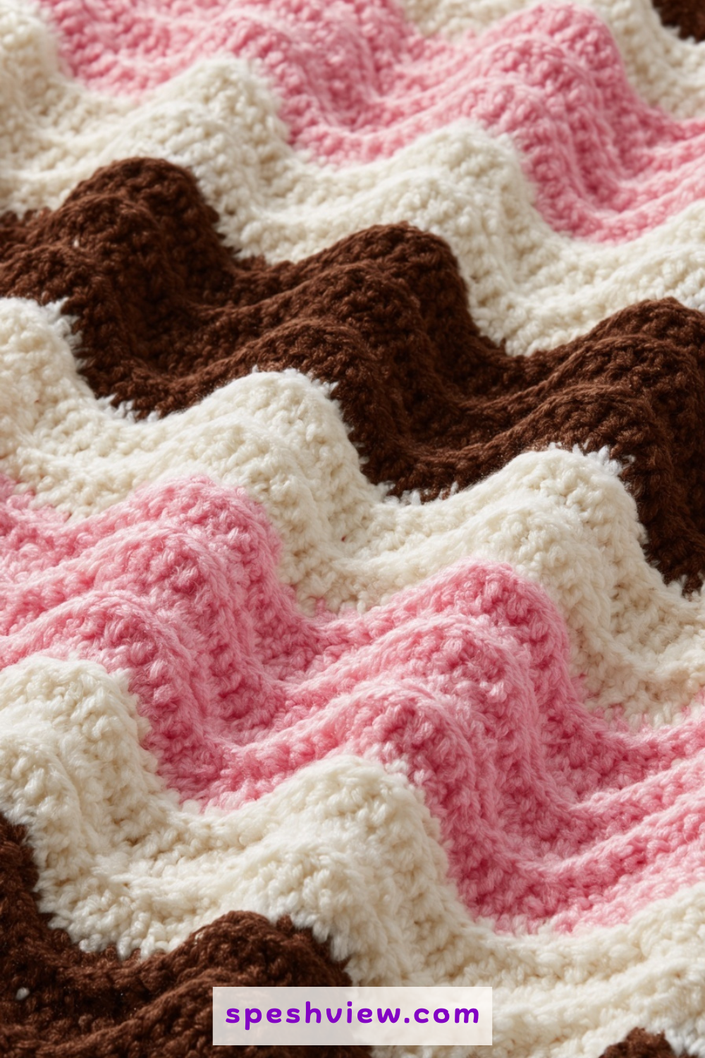 Inspired by the classic three-flavored ice cream, this playful design uses equal parts creamy white, strawberry pink, and chocolate brown. The ripple pattern creates a delightful, candy-striped effect that is particularly popular for baby blankets or whimsical children’s play areas. Because the colors are so distinct and recognizable, the blanket has an instant charm that feels both comforting and sweet to the eye. You can alternate the colors in thick, consistent blocks to make the ripples look like layers of a gourmet cake. It is a wonderful project for those who enjoy working with soft, plush yarns that invite tactile exploration and provide a sense of cozy, sugar-inspired comfort to anyone wrapped inside.