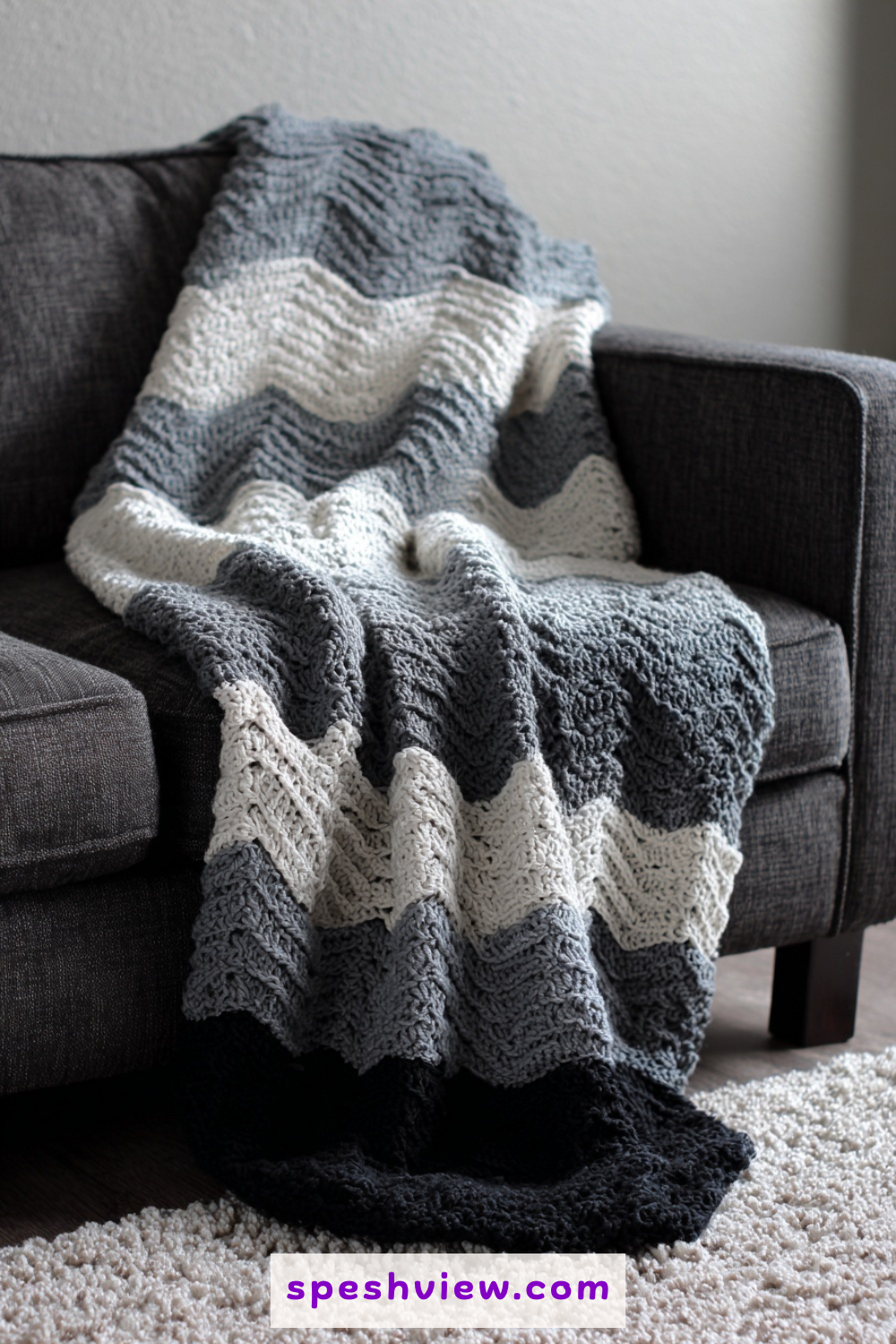 For a more modern and minimalist aesthetic, try a ripple blanket using various shades of cool gray, slate, and charcoal black. This ‘industrial’ look proves that the ripple stitch does not always have to be whimsical or colorful; it can also be incredibly sleek and sophisticated. By keeping the color palette tight and focused on cool, metallic tones, the blanket becomes a structural element in a room, much like a piece of architecture. The peaks and valleys of the crochet work provide just enough visual interest to prevent the gray from looking flat or boring. It is a perfect choice for an urban loft or a minimalist home office space where you want warmth without sacrificing a clean appearance.
