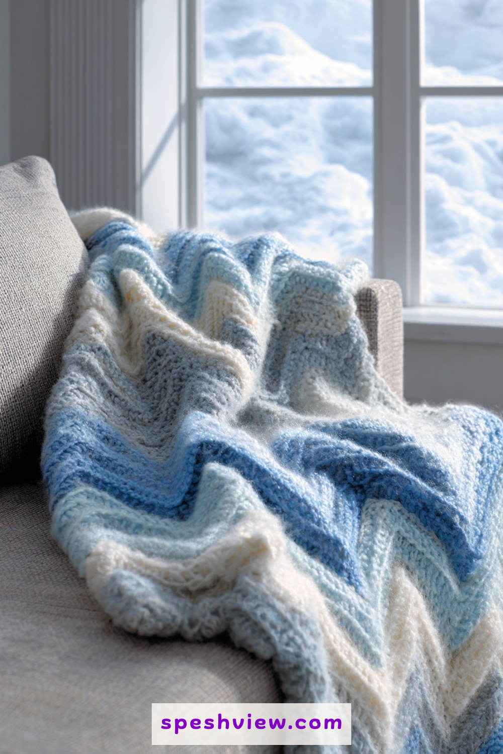Capture the stillness of a snowy morning by combining crisp whites, pale silvers, and icy light blues into a shimmering ripple. Using a yarn with a slight sheen or a fuzzy halo, such as an alpaca or mohair blend, can add to the frost-covered appearance of the finished blanket. The ripples in this context look like drifts of snow piled up against a fence or the jagged, beautiful edges of a massive iceberg. It is a sophisticated and calming design that feels especially appropriate for a guest bedroom or a sunroom during the colder months. The overall effect is one of purity and light, offering a refreshing visual break from the darker tones often found in traditional winter home decor.