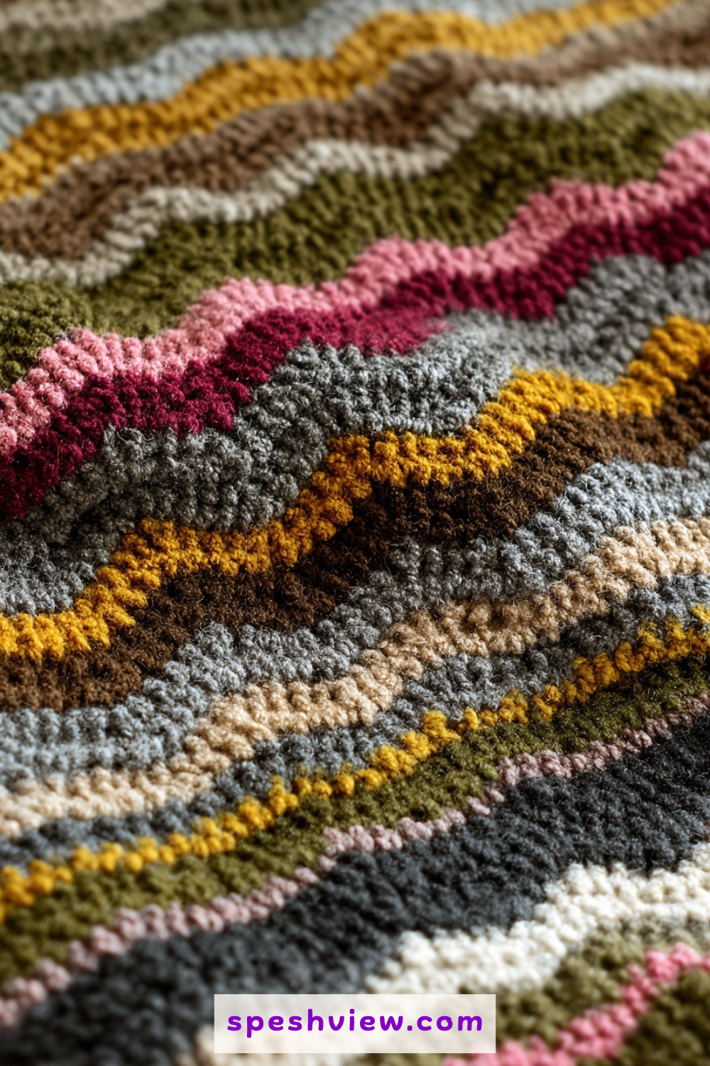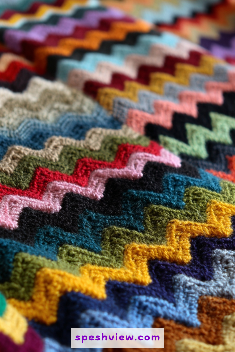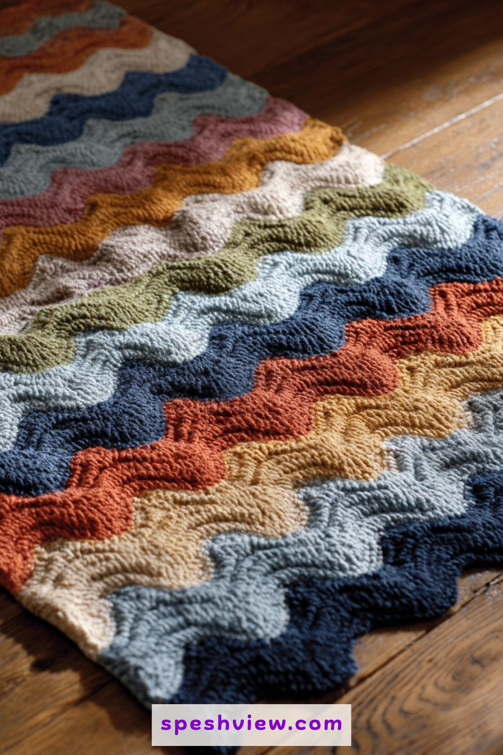This idea involves using a variegated yarn that contains pops of purple, yellow, and red, interspersed with solid rows of grass green. The effect is that of a chaotic but beautiful meadow in full bloom during the peak of the spring season. The ripple stitch works beautifully with variegated yarns because the zig-zag motion breaks up the color pooling that can sometimes occur with straight rows of crochet. It creates a vibrant, energetic piece of home decor that feels alive with color and spontaneity. Every row is a new discovery as different shades emerge from your hook, making it an engaging and fast-paced project that never feels repetitive or dull to complete, even on the larger sections.