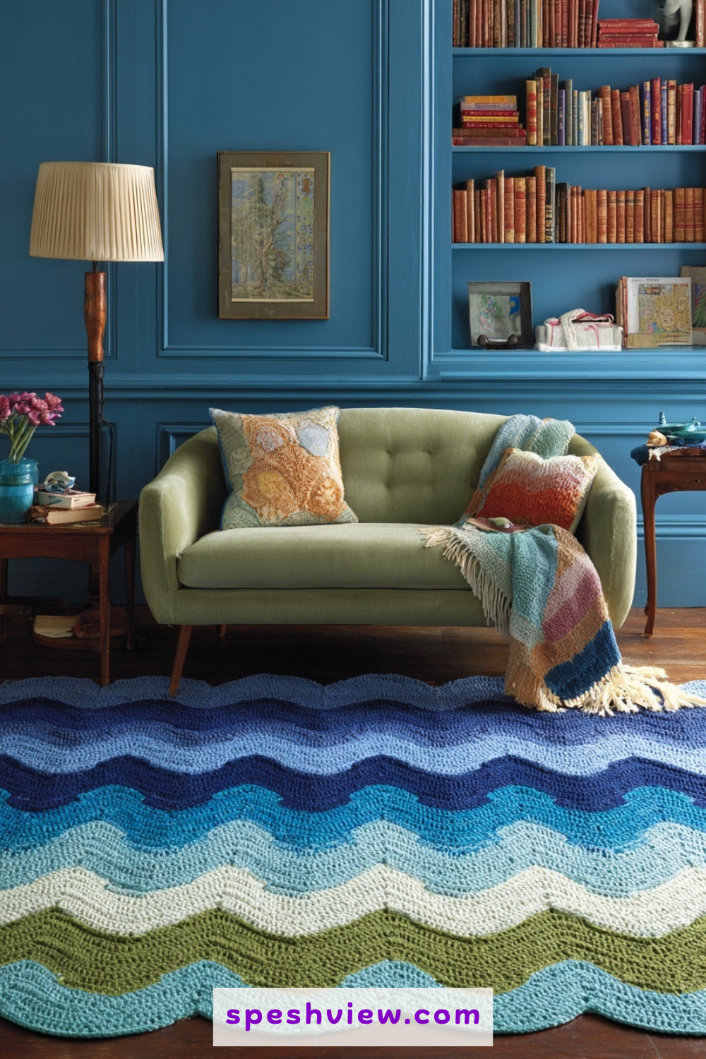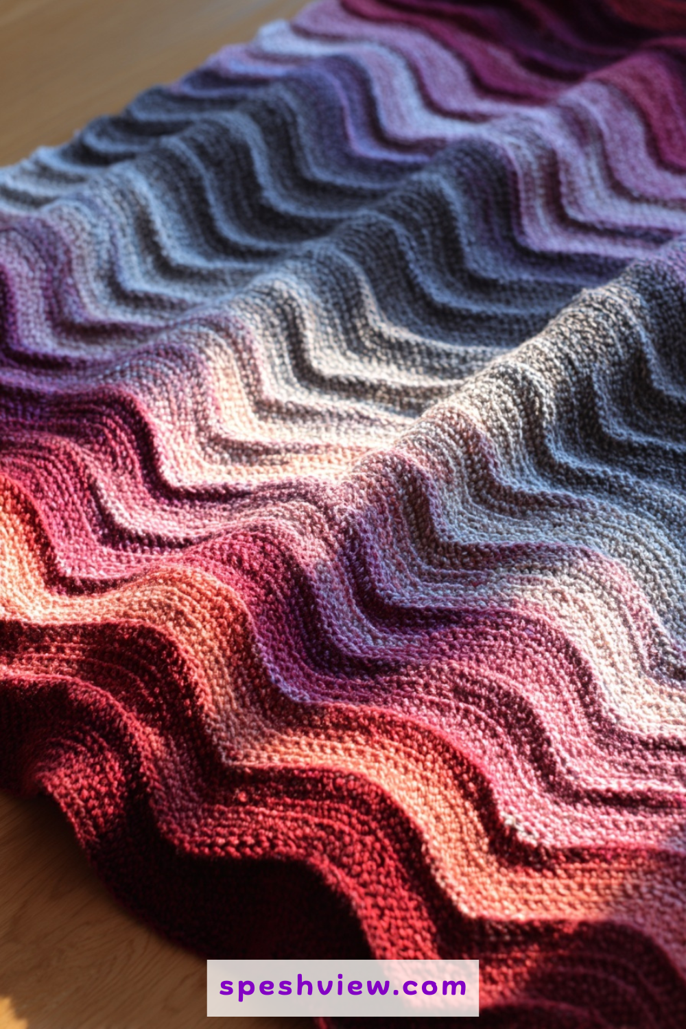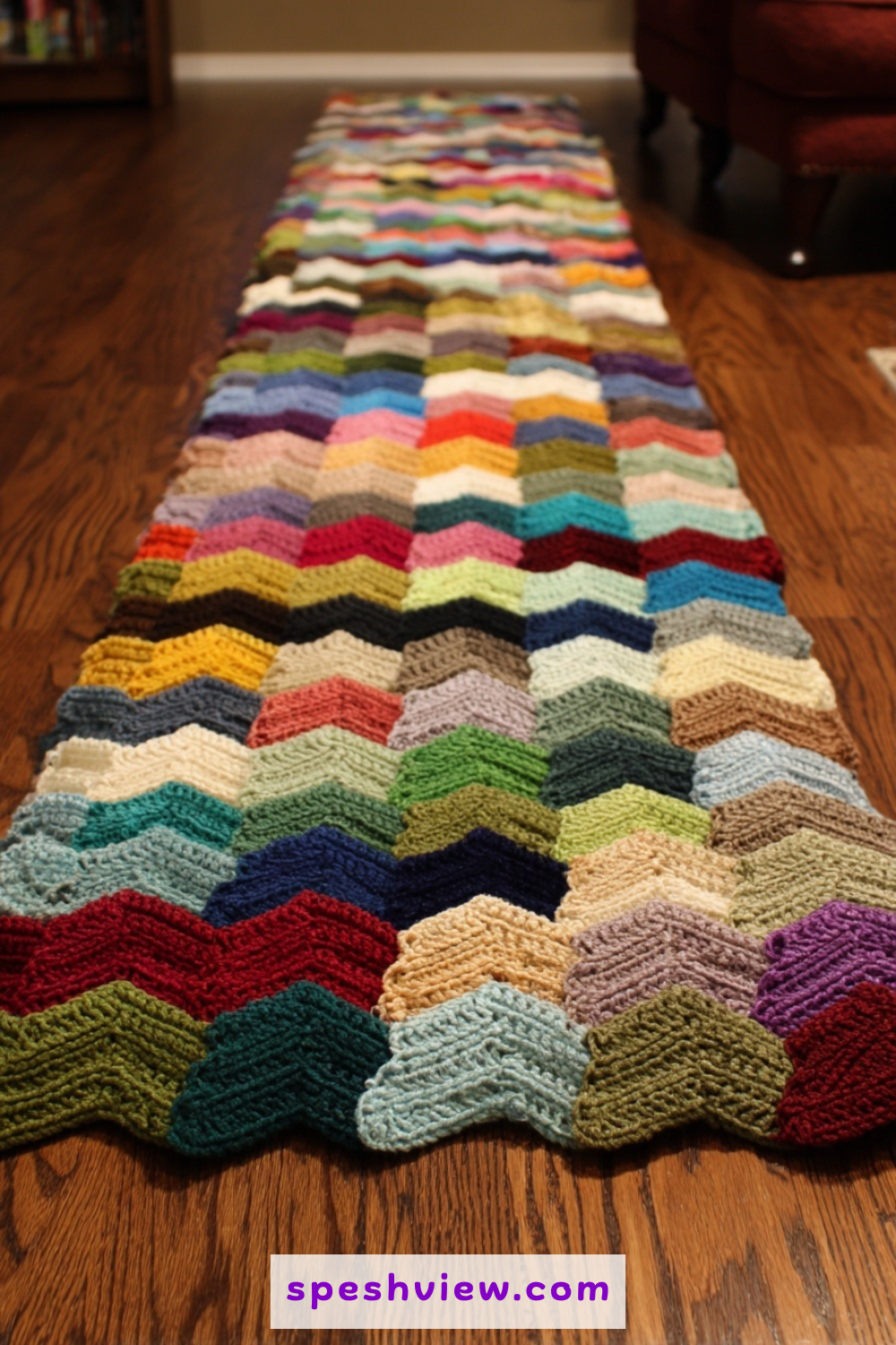 This idea involves using a variegated yarn that contains pops of purple, yellow, and red, interspersed with solid rows of grass green. The effect is that of a chaotic but beautiful meadow in full bloom during the peak of the spring season. The ripple stitch works beautifully with variegated yarns because the zig-zag motion breaks up the color pooling that can sometimes occur with straight rows of crochet. It creates a vibrant, energetic piece of home decor that feels alive with color and spontaneity. Every row is a new discovery as different shades emerge from your hook, making it an engaging and fast-paced project that never feels repetitive or dull to complete, even on the larger sections.