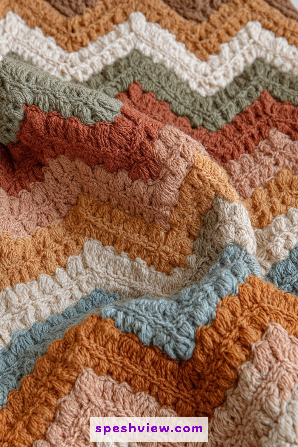 Drawing inspiration from the vast, arid landscapes of the high desert, this ripple idea utilizes warm terracottas, dusty ochres, and muted sage greens. The ripple pattern provides the perfect architectural structure to represent rolling sand dunes and distant mesas under a setting sun. When you choose high-quality wool or organic cotton in these earthy tones, the blanket becomes a grounded piece of decor that adds instant warmth to a modern interior. It is a wonderful way to experiment with matte textures and natural fibers, resulting in a sophisticated textile that feels both ancient and contemporary at the same time. Each peak in the crochet pattern acts as a miniature mountain, bringing the rugged beauty of the outdoors into your cozy reading nook.