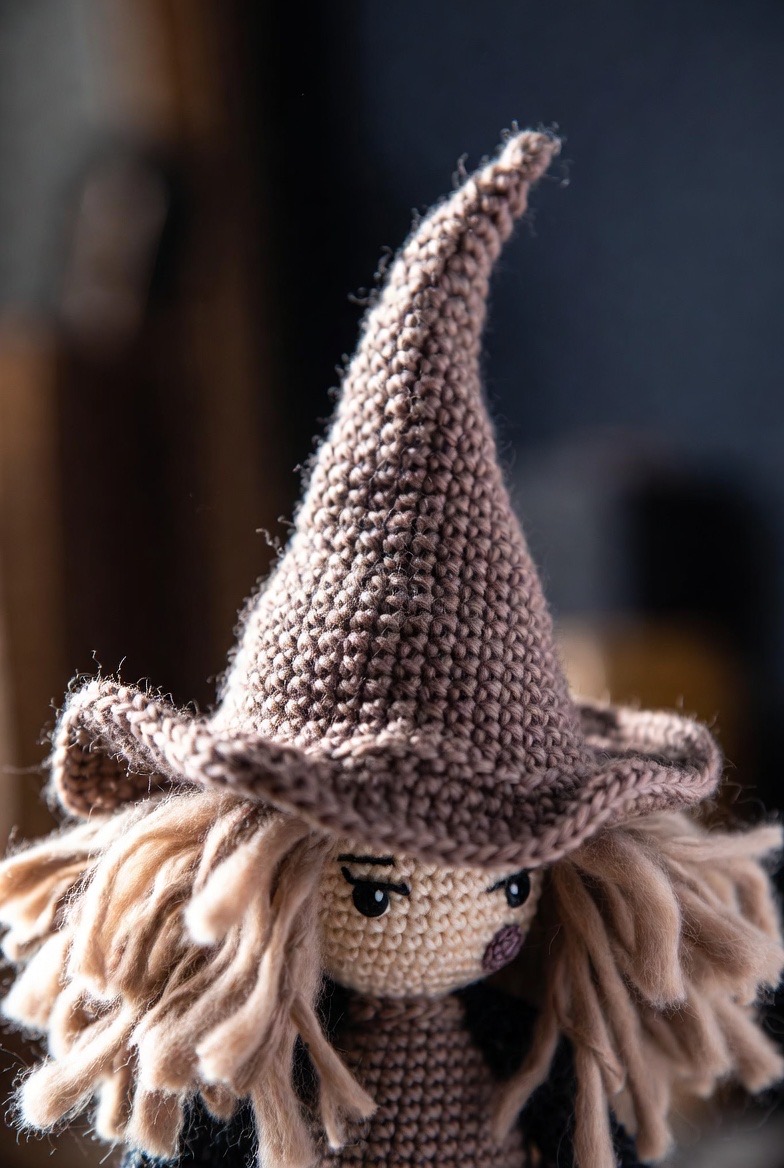 This isn’t your average pointed hat. By using a softer yarn and adding a few extra rows of decreases, you can create a witch’s hat that has a charming, lived-in ‘slouch’ at the tip. Pair her with a messy head of yarn hair and a tiny embroidered mole for a character that feels like she has plenty of stories to tell.