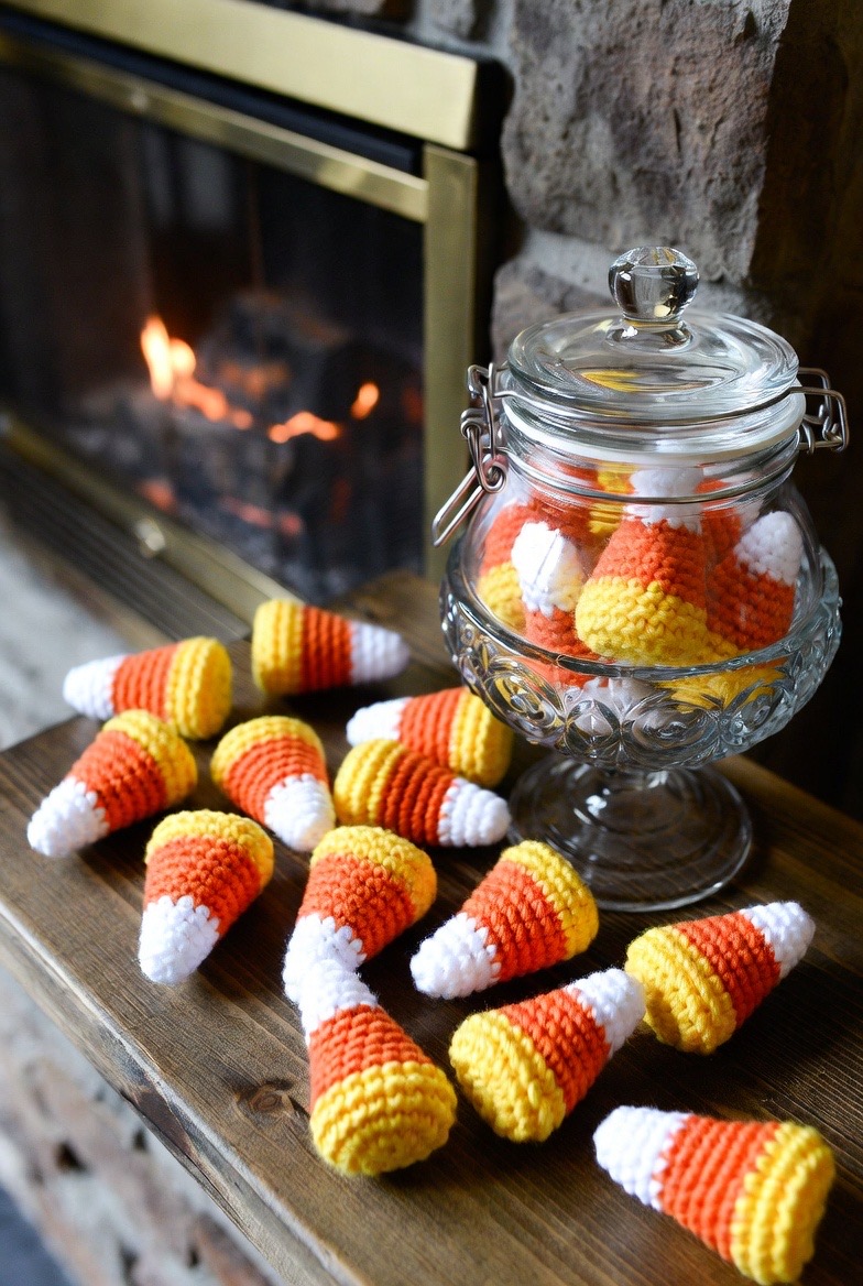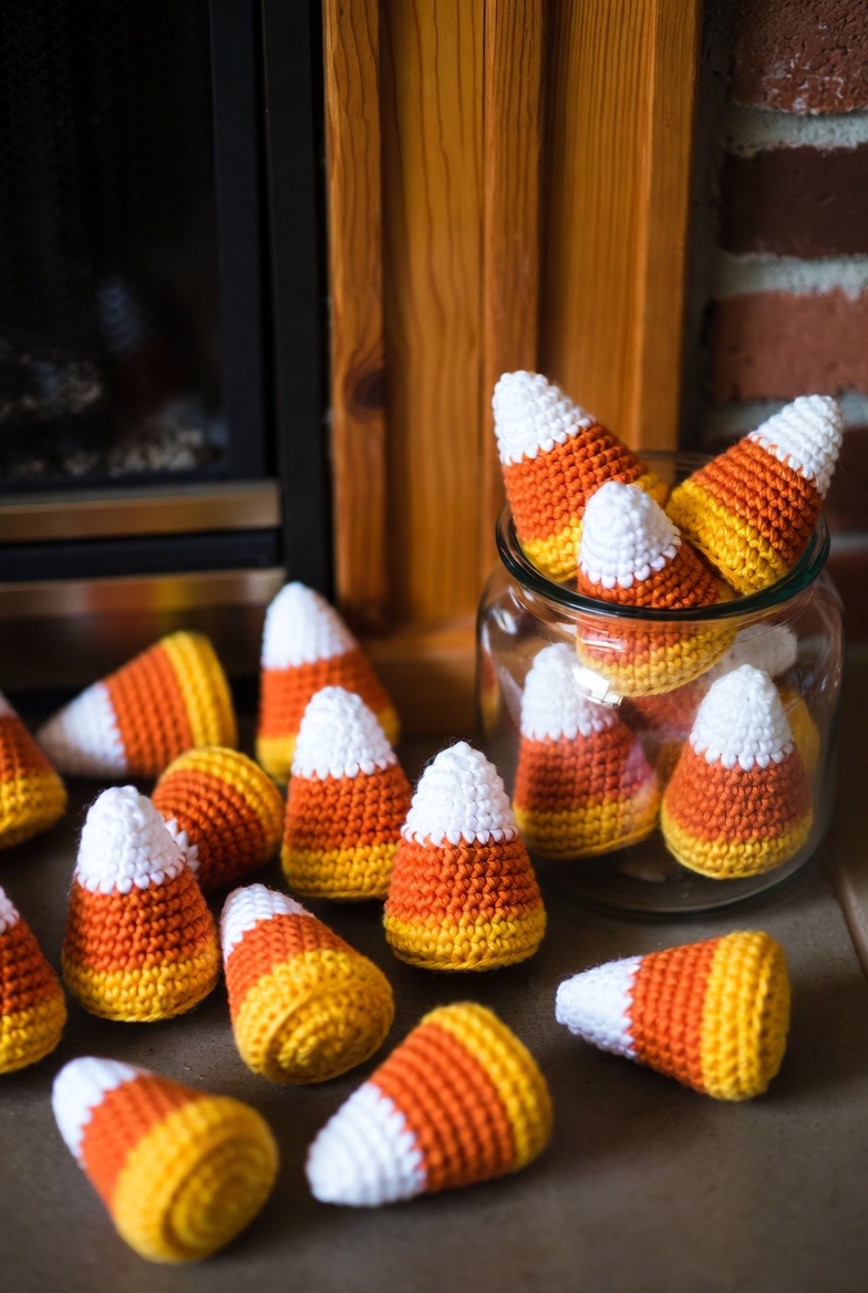This is the ultimate quick project. By working in a simple cone shape with white, orange, and yellow sections, you create a recognizable icon of the season. Scatter a dozen of these across your mantel or place them in a decorative glass jar for a burst of calorie-free sweetness.