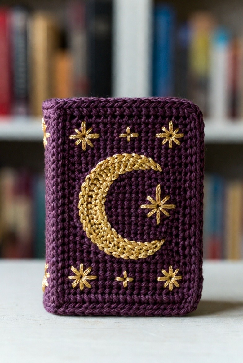 This is a unique, rectangular project that allows for beautiful embroidery on the ‘cover’. Use a gold thread to stitch a moon or a star onto a deep purple or brown book. It adds an intellectual, ‘wizard-study’ vibe to your bookshelf and serves as a great backdrop for other characters.